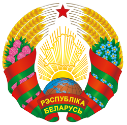 Герб обрамлен венком из золотых колосьев, переплетенных справа цветками клевера, слева – цветками льна. Венок трижды перевит с каждой стороны красно-зеленой лентой, в средней части которой в основании Государственного герба Республики Беларусь в две строки начертаны золотом слова “РЭСПУБЛІКА БЕЛАРУСЬ”.