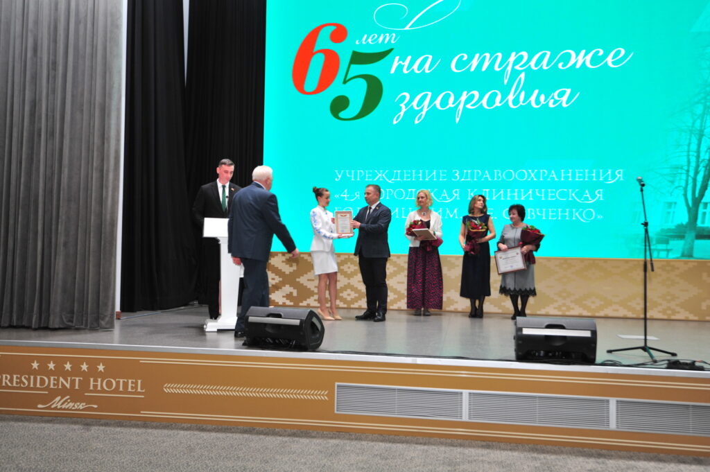 Торжественное мероприятие, посвященное 65-летию 4-й городской клинической больницы имени Н.Е. Савченко проходило в гостиничном комплексе «Президент-Отель», с участием представителя Министерства здравоохранения Республики Беларусь, председателя комитета по здравоохранению Мингорисполкома, заместителя главы администрации Московского района г. Минска, председатель Республиканского и городского комитетов белорусского профсоюза работников здравоохранения, руководителей учреждений здравоохранения г. Минска, руководителей общественных организаций и объединений Московского района г. Минска, которые поздравили коллектив 4-й городской клинической больницы имени Н.Е. Савченко с юбилеем и лучшим работникам клиники вручили награды.